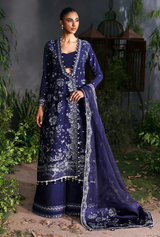EMBROIDERED DUPATTA PALLU BORDER 2 PCS BLUE SHMOZ SILK