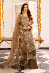 - Embroidered neckline with 3D flowers motifs for front on organza.
