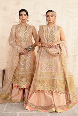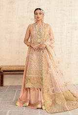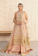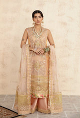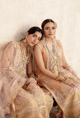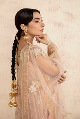 Hand embellished Embroidered side panels for front on dyed masoori (peach).