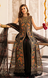 - 4 Hand embellished, panni work and embroidered side panel on dyed organza.