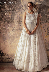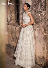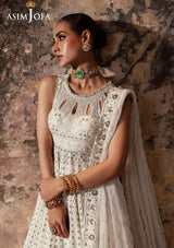 This ivory Peshwas is a canvas of opulence, a whisper of sophistication that dances in the light. Embroidered with ivory threads, it weaves a story of grace, while light gold cupped sequins shimmer like scattered stardust, adding a touch of magic to the ensemble. Crafted with a "boring" technique, it boasts a unique cutwork effect, reminiscent of ancient architecture. Paired with a beautifully embroidered dupatta, a masterpiece that envelops the wearer like a gentle breeze, creating an aura of ethereal beauty that lingers in the hearts of those who behold it.