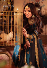 Clad in the emerald depths of a royal garden, this ensemble transforms you into a queen. The embroidered Peshwas, an epitome of regalia, is adorned with antique golden vines in the form of dori that wind through crimson threads, sparkling with sequined dewdrops of gold. The black dupatta, a night sky above the garden, completes this regal vision, making a statement that echoes through the night.