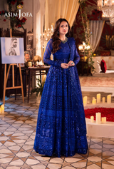 Wrapped in the tranquility of a pre-storm sky, this ensemble shimmers like lightning about to strike. The embroidered Peshwas, a masterpiece woven from gossamer dreams, is adorned with holographic sequins, each a tiny star caught in the web of midnight blue threads. Like a queen veiled in mist, the embroidered dupatta crowns this ethereal look, making it a mesmerizing addition to your occasionwear wardrobe.