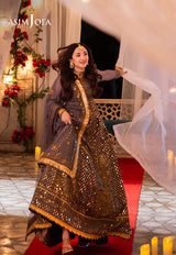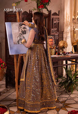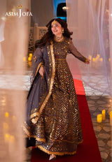 Like a timeless masterpiece unearthed from antiquity, this ensemble in smoky hues is adorned with celestial accents. Its embroidered Peshwas, a paragon of elegance, is embellished with threads of molten antique gold zari, their dance with sequins mimicking the cosmic shimmer on moonlit shores. A diaphanous dupatta, woven with threads of opulence, completes this astral tableau, elevating its ethereal beauty to elysian heights.