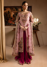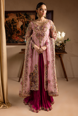 Embroidered and hand embellished front open shirt (appliqued neckline ,sleeves, and shirt panels) Paired with crushed gharara and embroidered dupatta.