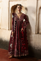 - Embroidered Front Panel (Korean Silk Dark Maroon) 3 Pieces