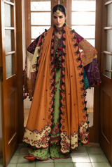 This parrot green karandi ensemble brings together exquisite craftsmanship and timeless charm.The intricate floral embroidery graces every inch,forming a pattern that exudes sophistication.The same-tone embroidered trousers enhance the coordinated feel,while a contrasting karandi shawl adds depth and a stylish edge.with every detail thoughtfully crafted,this outfit is a standout addition to your winter wardrobe-a truly refined choice for the discerning fashion enthusiast.