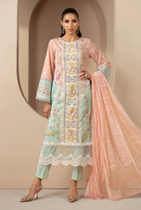 Prestitched Printed Embroidered Lawn Front With 3D Flowers & Stickon Pearls