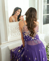 • Embroidered, sequinned pearl embellished front daman border (organza)