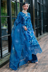 Embroidered, Printed And Embellished Chiffon Shirt Paired With Embroidered Organza Dupatta, Dyed Raw Silk Trouser And Inne