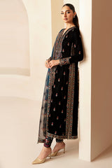 Add a touch of elegance to your next formal event with our Embroidered Velvet Formal VF-2028. The pure velvet front and sleeves, along with an embroidered border, create a luxurious and timeless look. The digital printed organza dupatta and rawsilk bottom add unique texture and dimension to this expertly crafted piece.
