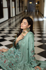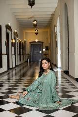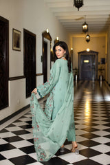 3pc unstitched swiss lawn embroidered shirt with Bamber crinkle embroidered dupatta